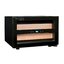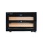 Материал двух выдвижных полок — дерево, признано долговечным и надежным, его внешний вид не портится, а сама конструкция не деформируется. Панель управления с сенсорными кнопками и дисплеем расположена посередине, настройка параметров не вызовет сложностей. Светодиодная потолочная подсветка максимально освещает внутреннюю камеру. Шкаф вмещает одну бутылку типа бордо 0.75 л. Система охлаждения — термоэлектрическая, является оптимальной для подобных приборов. Дверное остекление позволяет видеть содержимое, не заглядывая внутрь.