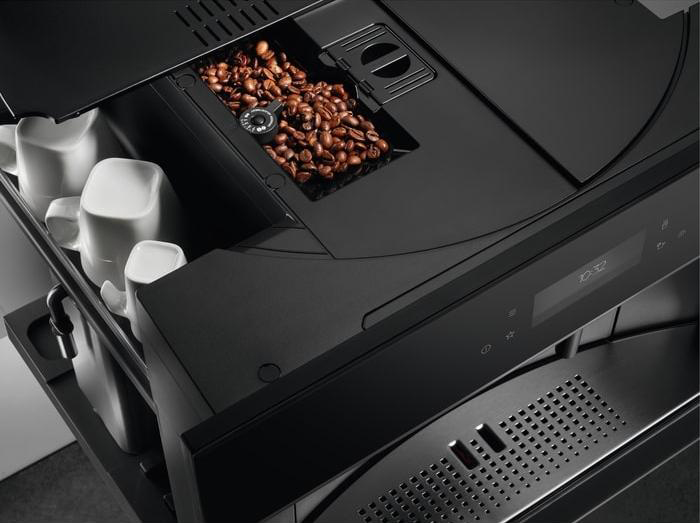 Контейнер для кофейных зерен — принадлежность кофемашин, оборудованных кофейной мельницей. Как правило, над мельницей он и располагается для более удобного помола кофе. Подобные контейнеры изготавливаются из безопасного пластика, прозрачного или непрозрачного, и бывают съемными и несъемными. Они оснащаются специальными датчиками, которые анализируют количество кофе, для оповещения о том, что контейнер скоро опустеет. Доступ к контейнеру для зерен зависит от типа встраивания кофемашины. Так, во встроенных машинах требуется вдвинуть прибор на телескопических направляющих.
