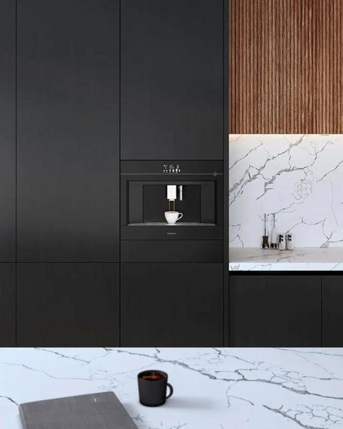 Расцветка современных кофемашин во многом определяется их типом встраивания. Встраиваемые модели, который устанавливаются в колонну вместе с другой бытовой техникой, обычно представлены в универсальных цветах, которые гармонично выглядят в любом интерьере. Преобладают среди них черный, белый и серый цвета, дополненные у ряда моделей цветной отделкой. Так, машины Kuppersbusch с фасадом черного и белого цвета имеют отделку оттенка золота, серебра, красного перца, меди, черного хрома. Фасад встроенных моделей в ретро-стиле —например, у моделей Smeg, — может быть цвета беж или антрацит, а у машин Ilve — оттенка Burgundy с ручками из латуни.