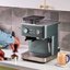 Визуальные характеристики кофемашины играют важную роль при выборе. Цвет корпуса этой модели — темно-зеленый. Основной материал поверхности — пластик. Металлический рожок не только выглядит стильно, но и гарантирует долговечную бесперебойную работу.