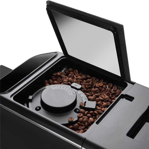 Благодаря встроенным рецептам вы можете приготовить следующие виды кофе: Эспрессо, Двойной эспрессо, Капучино, Латте, Американо, Горячая вода. На вкус и аромат сильно влияет степень помола — ее можно выставить вручную в зависимости от предпочтений.