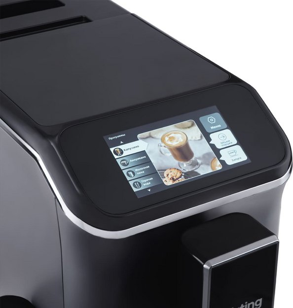 В зависимости от модели и ценовой категории кофемашины могут оснащаться черно-белыми или цветными дисплеями, нередко с возможностью регулировки яркости или с отключением в ночное время. Если на черно-белых символьных дисплеях выводится только основные данные в виде цифр и пиктограмм, то текстовые, особенно цветные, обычно намного более информативны и наглядны. Так, на них можно выбрать тип напитка не только из их перечня, но и указав на нужное изображение, что гораздо удобнее для пользователя. Наиболее удобны сенсорные дисплеи, позволяющие задавать все необходимые команды простым прикосновением: такой дисплей практически заменяет всю панель управления и позволяет готовить напитки в интерактивном режиме.