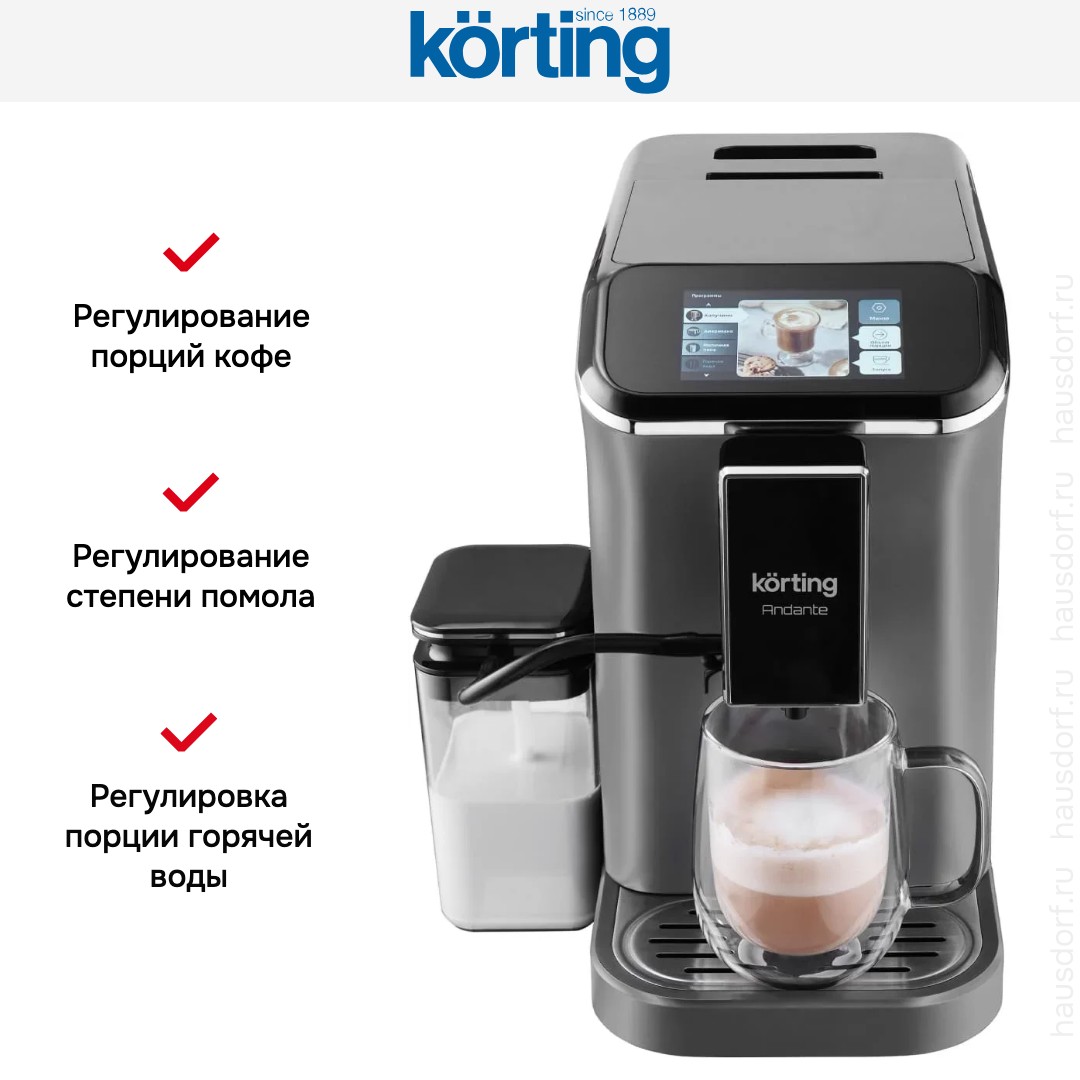 Π ΠΌΠΎΠ΄Π΅Π»ΠΈ Korting KACM 2003 Andante ΠΈΡΠΏΠΎΠ»ΡΠ·ΡΡΡΡΡ ΡΡΠ°Π·Ρ Π΄Π²Π° ΡΠΈΠΏΠ° ΠΊΠΎΡΠ΅ β ΠΌΠΎΠ»ΠΎΡΡΠΉ ΠΈ Π·Π΅ΡΠ½ΠΎΠ²ΠΎΠΉ: ΡΡΠΎ ΡΠ°ΡΡΠΈΡΡΠ΅Ρ Π²Π°ΡΠΈ Π²ΠΎΠ·ΠΌΠΎΠΆΠ½ΠΎΡΡΠΈ ΠΈ ΡΠ²Π΅Π»ΠΈΡΠΈΠ²Π°Π΅Ρ ΡΠ°Π·Π½ΠΎΠΎΠ±ΡΠ°Π·ΠΈΠ΅ Π½Π°ΠΏΠΈΡΠΊΠΎΠ², ΠΊΠΎΡΠΎΡΡΠ΅ ΠΌΠΎΠΆΠ½ΠΎ ΠΏΡΠΈΠ³ΠΎΡΠΎΠ²ΠΈΡΡ Ρ ΠΎΡΠ»ΠΈΡΠΈΡΠΌΠΈ Π² ΠΊΡΠ΅ΠΏΠΎΡΡΠΈ, Π°ΡΠΎΠΌΠ°ΡΠ½ΠΎΡΡΠΈ ΠΈ ΡΠ΅ΡΠΏΠΊΠΎΡΡΠΈ. ΠΠ²ΡΠΎΠΌΠ°ΡΠΈΡΠ΅ΡΠΊΠ°Ρ ΠΊΠΎΡΠ΅ΠΌΠ°ΡΠΈΠ½Π° β ΠΏΠΎ ΡΡΡΠΈ ΠΎΠ±Π»Π΅Π³ΡΠ΅Π½Π½Π°Ρ ΠΈ ΡΠΌΠ΅Π½ΡΡΠ΅Π½Π½Π°Ρ Π²Π΅ΡΡΠΈΡ ΠΏΡΠΈΠ±ΠΎΡΠΎΠ² ΠΈΠ· ΠΊΠ°ΡΠ΅, ΠΎΠ½Π° ΠΎΠ±Π»Π°Π΄Π°Π΅Ρ ΡΠΈΡΠΎΠΊΠΈΠΌΠΈ Π²ΠΎΠ·ΠΌΠΎΠΆΠ½ΠΎΡΡΡΠΌΠΈ, ΡΠ°Π·Π½ΠΎΠΎΠ±ΡΠ°Π·Π½ΡΠΌ ΠΌΠ΅Π½Ρ ΠΈ ΠΏΡΠΎΠ΄ΡΠΌΠ°Π½Π½ΠΎΠΉ ΡΠΈΡΡΠ΅ΠΌΠΎΠΉ ΠΊΠΎΠ½ΡΡΠΎΠ»Ρ Π·Π° ΠΏΡΠΎΡΠ΅ΡΡΠΎΠΌ. ΠΡΠΎ ΠΎΡΠ»ΠΈΡΠ½ΡΠΉ Π²ΡΠ±ΠΎΡ ΠΊΠ°ΠΊ Π΄Π»Ρ Π΄ΠΎΠΌΠ°, ΡΠ°ΠΊ ΠΈ Π΄Π»Ρ ΠΎΡΠΈΡΠ°.