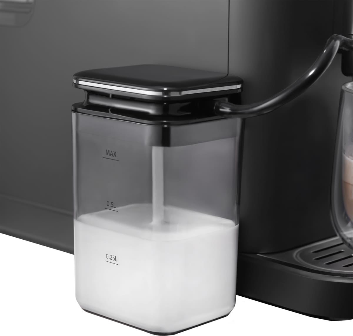 Π Π΅Π³ΡΠ»ΠΈΡΠΎΠ²ΠΊΠ° ΠΏΠΎΡΡΠΈΠΈ ΠΌΠΎΠ»ΠΎΠΊΠ° Π² ΠΊΠΎΡΠ΅ΠΌΠ°ΡΠΈΠ½Π΅ ΠΏΠΎΠ·Π²ΠΎΠ»ΡΠ΅Ρ ΠΈΠ·ΠΌΠ΅Π½ΠΈΡΡ ΡΠΎΠΎΡΠ½ΠΎΡΠ΅Π½ΠΈΠ΅ ΠΊΠΎΡΠ΅ ΠΈ ΠΌΠΎΠ»ΠΎΠΊΠ° Π² Π½Π΅ΠΊΠΎΡΠΎΡΡΡ Π½Π°ΠΏΠΈΡΠΊΠ°Ρ , ΡΠ°ΡΠ΅ Π²ΡΠ΅Π³ΠΎ Π² ΠΊΠ°ΠΏΡΡΠΈΠ½ΠΎ ΠΈ Π»Π°ΡΡΠ΅. ΠΠΏΡΠΈΡ ΠΏΡΠ΅Π΄ΡΡΠΌΠΎΡΡΠ΅Π½Π° Π² ΠΊΠΎΡΠ΅ΠΌΠ°ΡΠΈΠ½Π°Ρ ΠΏΡΠ΅ΠΌΠΈΡΠΌ-ΠΊΠ»Π°ΡΡΠ°, Π½Π°ΠΏΡΠΈΠΌΠ΅Ρ ΠΏΡΠΈΠ±ΠΎΡΠ°Ρ Miele ΠΈ Smeg. ΠΠΎΠ»ΠΈΡΠ΅ΡΡΠ²ΠΎ ΠΌΠΎΠ»ΠΎΠΊΠ° ΠΈ ΠΊΠΎΡΠ΅ Π½Π° ΠΏΠΎΡΡΠΈΡ Π² ΠΊΠ°ΠΆΠ΄ΠΎΠΌ Π½Π°ΠΏΠΈΡΠΊΠ΅ ΡΡΡΠ°Π½ΠΎΠ²Π»Π΅Π½ΠΎ ΠΏΠΎ ΡΠΌΠΎΠ»ΡΠ°Π½ΠΈΡ — Π½Π°ΠΏΡΠΈΠΌΠ΅Ρ, Π΄Π»Ρ ΠΊΠ°ΠΏΡΡΠΈΠ½ΠΎ Π½Π΅ΠΎΠ±Ρ ΠΎΠ΄ΠΈΠΌΠ° ΠΎΠ΄Π½Π° ΡΡΠ΅ΡΡ ΡΡΠΏΡΠ΅ΡΡΠΎ, ΠΎΠ΄Π½Π° ΡΡΠ΅ΡΡ ΠΌΠΎΠ»ΠΎΠΊΠ° ΠΈ ΠΎΠ΄Π½Π° ΡΡΠ΅ΡΡ ΠΌΠΎΠ»ΠΎΡΠ½ΠΎΠΉ ΠΏΠ΅Π½Ρ. Π§ΡΠΎΠ±Ρ ΠΈΠ·ΠΌΠ΅Π½ΠΈΡΡ Π²ΠΊΡΡ, ΠΊΡΠ΅ΠΏΠΎΡΡΡ ΠΈ ΠΎΠ±ΡΠ΅ΠΌ Π½Π°ΠΏΠΈΡΠΊΠ° ΠΏΠΎ ΠΆΠ΅Π»Π°Π½ΠΈΡ ΠΏΠΎΠ»ΡΠ·ΠΎΠ²Π°ΡΠ΅Π»Ρ, Π½Π΅ΠΎΠ±Ρ ΠΎΠ΄ΠΈΠΌΠΎ ΡΡΡΠ°Π½ΠΎΠ²ΠΈΡΡ Π΅Π³ΠΎ ΠΎΠ±ΡΠ΅ΠΌ ΠΏΡΠΈ ΠΏΠΎΠΌΠΎΡΠΈ ΠΏΠ΅ΡΠ΅ΠΊΠ»ΡΡΠ°ΡΠ΅Π»Π΅ΠΉ ΠΈ ΠΊΠ½ΠΎΠΏΠΎΠΊ ΠΏΠ°Π½Π΅Π»ΠΈ ΡΠΏΡΠ°Π²Π»Π΅Π½ΠΈΡ. ΠΠ°ΠΊ ΠΏΡΠ°Π²ΠΈΠ»ΠΎ, ΠΎΡΡΠ΅Π³ΡΠ»ΠΈΡΠΎΠ²Π°ΡΡ Π΅Π³ΠΎ ΠΌΠΎΠΆΠ½ΠΎ ΠΏΠ»Π°Π²Π½ΠΎ, ΠΏΡΡΠ΅ΠΌ Π½Π°ΠΆΠ°ΡΠΈΡ ΠΊΠ½ΠΎΠΏΠΎΠΊ ΠΈΠ»ΠΈ ΠΏΠΎΠ²ΠΎΡΠΎΡΠ° ΡΡΡΠΊΠΈ, ΠΎΡ ΠΌΠΈΠ½ΠΈΠΌΠ°Π»ΡΠ½ΠΎΠ³ΠΎ Π΄ΠΎ ΠΌΠ°ΠΊΡΠΈΠΌΠ°Π»ΡΠ½ΠΎ Π²ΠΎΠ·ΠΌΠΎΠΆΠ½ΠΎΠ³ΠΎ Π·Π½Π°ΡΠ΅Π½ΠΈΡ. ΠΠΎΡΠ»Π΅ ΡΠΎΠ³ΠΎ, ΠΊΠ°ΠΊ Π½ΠΎΠ²ΠΎΠ΅ ΠΊΠΎΠ»ΠΈΡΠ΅ΡΡΠ²ΠΎ ΠΌΠΎΠ»ΠΎΠΊΠ° Π²ΡΠ±ΡΠ°Π½ΠΎ, ΠΎΠ½ΠΎ Π±ΡΠ΄Π΅Ρ Π°Π²ΡΠΎΠΌΠ°ΡΠΈΡΠ΅ΡΠΊΠΈ ΡΠΎΡ ΡΠ°Π½ΡΡΡΡΡ Π² ΠΏΠ°ΠΌΡΡΠΈ ΠΌΠ°ΡΠΈΠ½Ρ Π΄ΠΎ ΡΠ»Π΅Π΄ΡΡΡΠ΅Π³ΠΎ ΠΈΠ·ΠΌΠ΅Π½Π΅Π½ΠΈΡ.