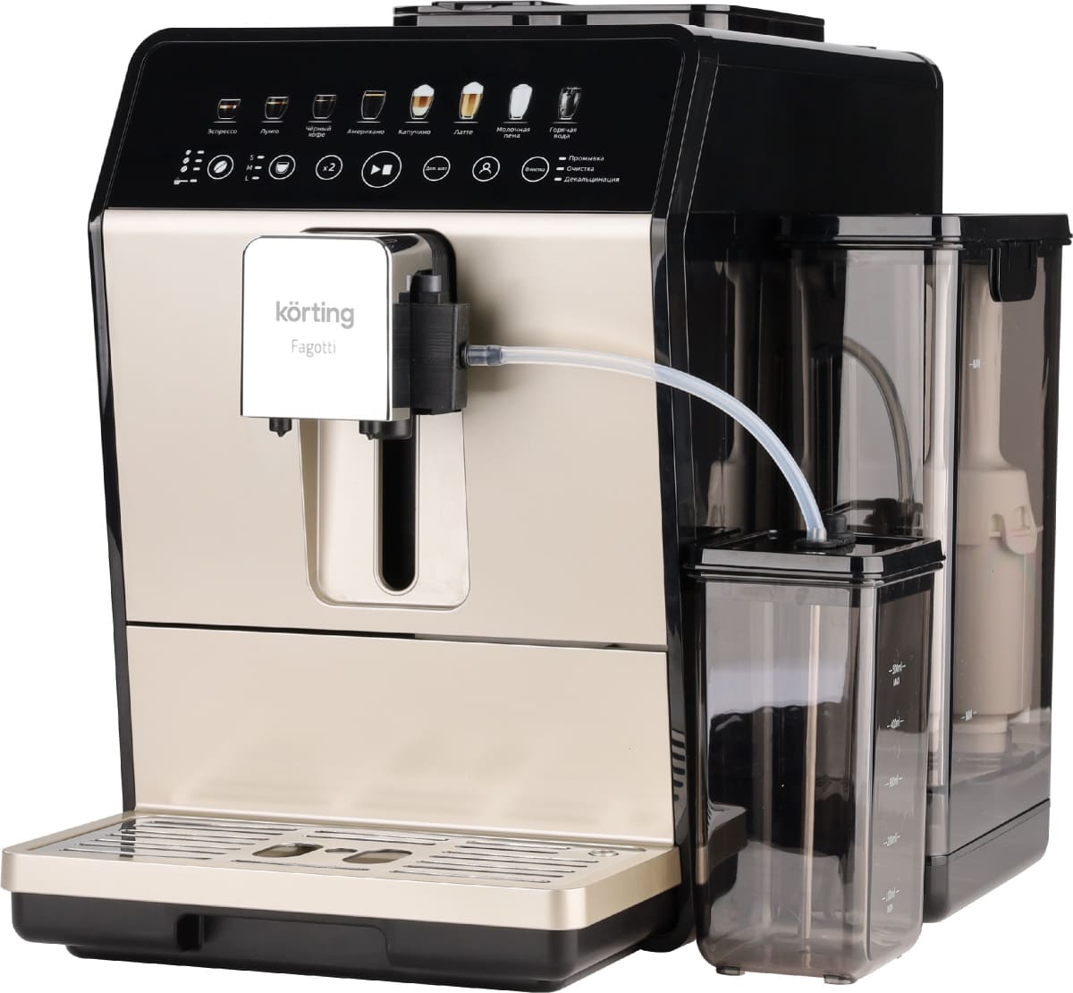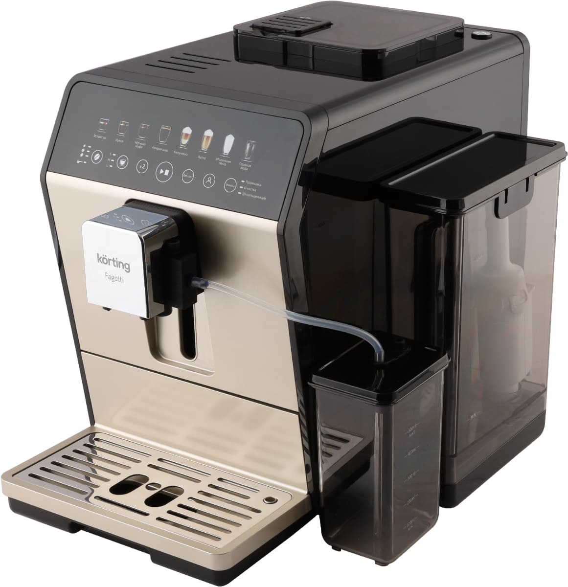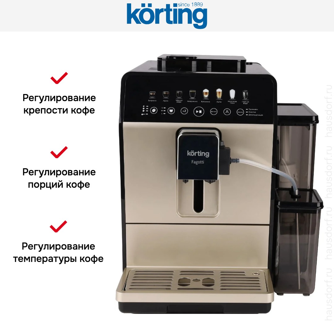 В модели Korting KACM 2026 B Fagotti используются сразу два типа кофе — молотый и зерновой: это расширяет ваши возможности и увеличивает разнообразие напитков, которые можно приготовить с отличиями в крепости, ароматности и терпкости. Автоматическая кофемашина — по сути облегченная и уменьшенная версия приборов из кафе, она обладает широкими возможностями, разнообразным меню и продуманной системой контроля за процессом. Это отличный выбор как для дома, так и для офиса.