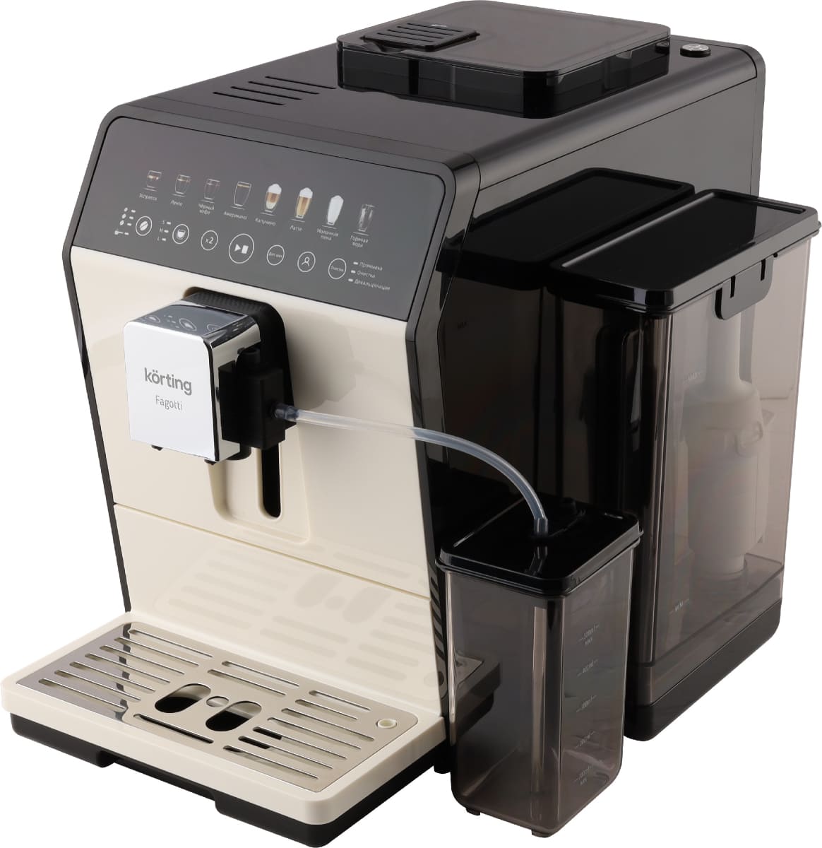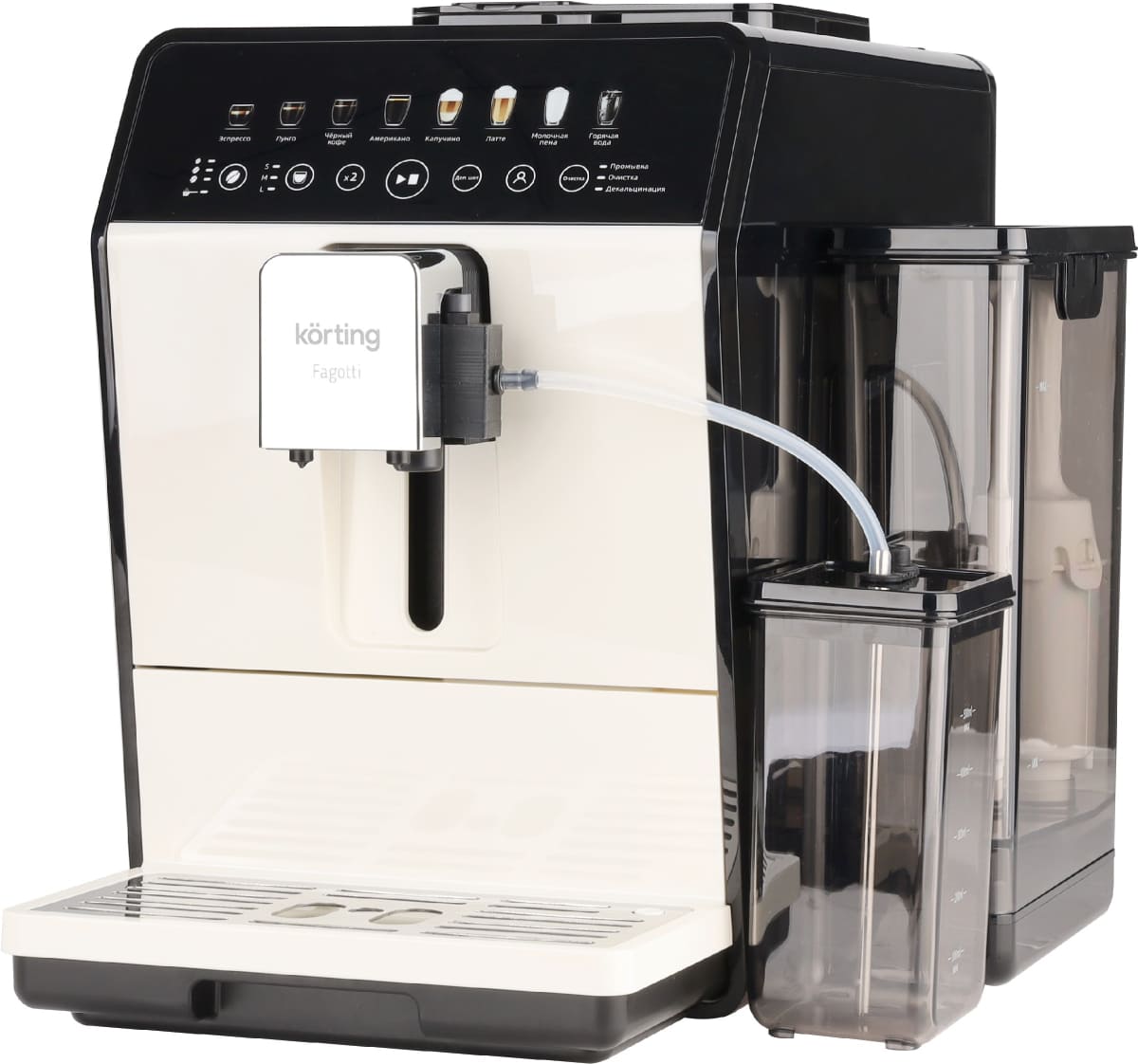 В модели Korting KACM 2026 W Fagotti используются сразу два типа кофе — молотый и зерновой: это расширяет ваши возможности и увеличивает разнообразие напитков, которые можно приготовить с отличиями в крепости, ароматности и терпкости. Автоматическая кофемашина — по сути облегченная и уменьшенная версия приборов из кафе, она обладает широкими возможностями, разнообразным меню и продуманной системой контроля за процессом. Это отличный выбор как для дома, так и для офиса.