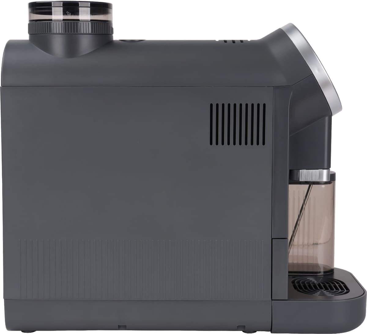Визуальные характеристики кофемашины играют важную роль при выборе. Цвет корпуса этой модели — серый. Основной материал поверхности — нержавеющая сталь / пластик.