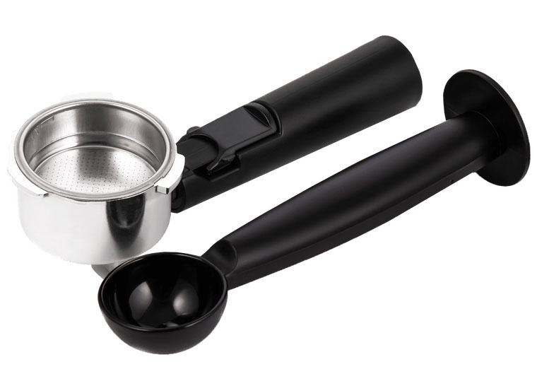 Рожок в рожковых кофемашинах всегда изготавливается из металла и пластика. Рожок, он же портафильтр или холдер, представляет собой фильтродержатель с ручкой, основной элемент конструкции рожковой кофемашины. Молотый кофе помещается в рожок, уплотняется, после чего он закрепляется в варочной группе машины. Стальные массивные рожки хорошо сохраняют температуру и позволяют готовить напитки высокого качества. В машинах для дома рожок часто изготавливается из пластика или комбинации пластика и металла — такая конструкция отличается меньшей прочностью, но на вкус напитка почти не влияет.