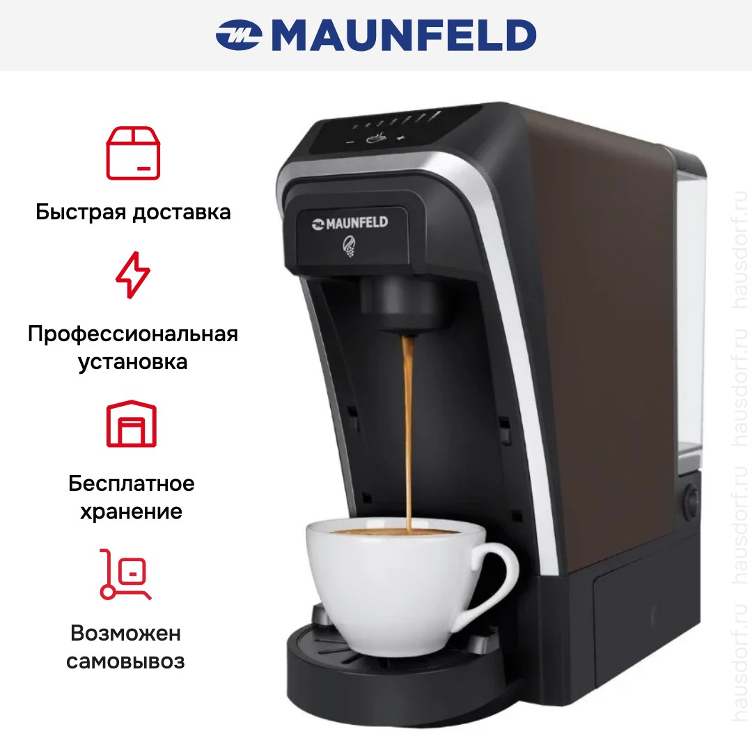 Капсульная Maunfeld MCCM-CM823BR — компактный и выразительный прибор с коричневым пластиковым корпусом, который выглядит стильно и аккуратно в любой кухне.