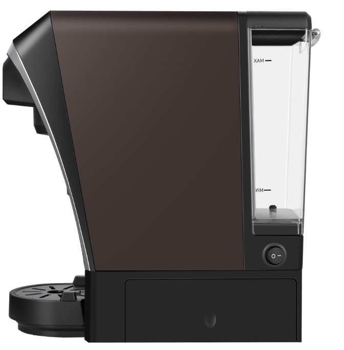 Визуальные характеристики кофемашины играют важную роль при выборе. Цвет корпуса этой модели — коричневый. Основной материал поверхности — пластик.