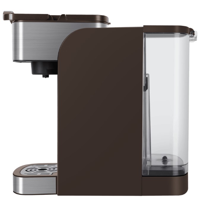 Визуальные характеристики кофемашины играют важную роль при выборе. Цвет корпуса этой модели — коричневый. Основной материал поверхности — пластик.