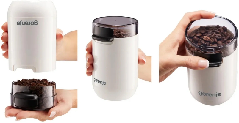 Кофемолка Gorenje SMK150SW — компактный и аккуратный прибор в белом корпусе. Его размеры 14.89x9 см и вес 0.5 кг делают устройство очень компактным и лёгким. Корпус выполнен из пластика, что обеспечивает малый вес и простоту ухода. Чаша для помола из нержавеющей стали очень долговечна, к тому же этот материал гарантирует отсутствие посторонних запахов и легко чистится.