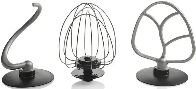 Насадки в комплекте: лопатка для смешивания, блендер, 3 насадки для нарезания ломтиками и шинкования