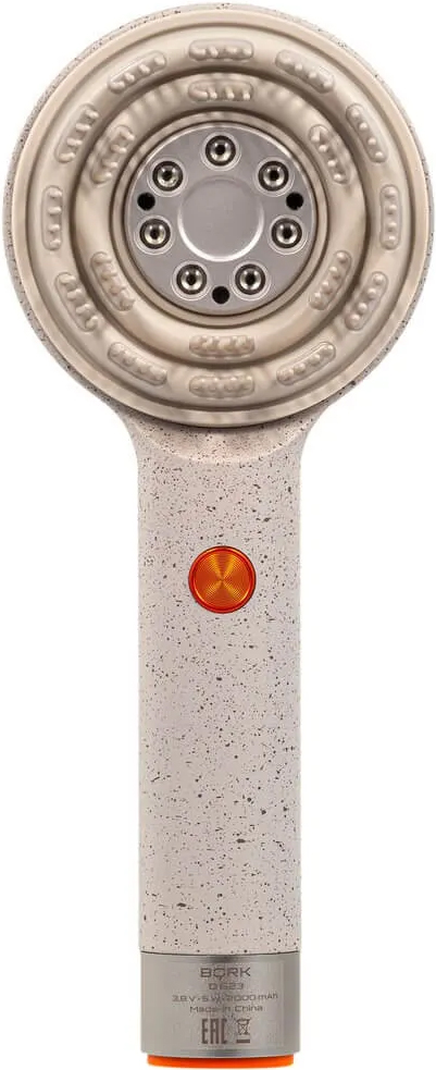 Массажер-расческа для головы BORK D623ch — это инновационное устройство, сочетающее в себе функции ухода за волосами и расслабляющего массажа кожи головы. Благодаря компактным размерам и весу всего 0,25 кг прибор невероятно удобен в использовании — он легко помещается в ладони и не утомляет руку даже при длительном применении. Изделие выполнено в изысканном оттенке «шампань», который придает ему элегантный и современный вид, а сочетание пластика и алюминия обеспечивает прочность, лёгкость и долговечность конструкции. Мощность устройства составляет 5 Вт, чего достаточно для эффективного, но деликатного воздействия без излишнего шума или вибрации. Несмотря на небольшое время непрерывной работы — около 10 минут (0,17 часа), — этого вполне достаточно для полноценного сеанса, направленного на стимуляцию кровообращения, снятие напряжения и улучшение состояния кожи головы. Уникальная форма зубцов имитирует движения профессионального массажиста, мягко воздействуя на корни волос, улучшая микроциркуляцию и способствуя более активному росту. Прибор идеально подходит как для ежедневного ухода, так и для использования до или после нанесения масок и сывороток, усиливая их проникновение в кожу. Благодаря продуманной эргономике массажер-расческа легко скользит по прядям, не вырывая волосы и не вызывая дискомфорта. Он подходит для всех типов волос и особенно рекомендуется тем, кто испытывает стресс, страдает от усталости или хочет улучшить внешний вид своей шевелюры. Простота в использовании, стильный дизайн и высокая функциональность делают эту модель незаменимым аксессуаром для заботы о себе. Устройство легко заряжается, быстро готово к использованию и может стать частью ежедневного ритуала красоты и релаксации.