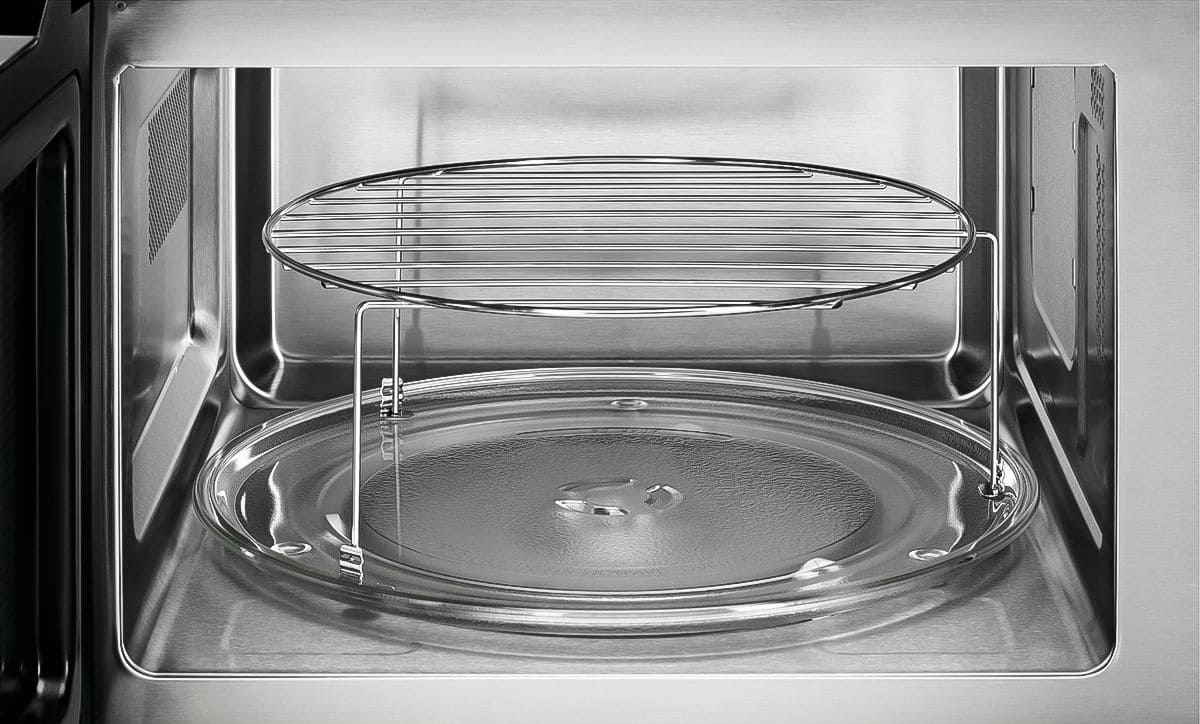 Нержавеющая сталь — быстро нагревается и хорошо переносит высокие температуры, поэтому ее используют в микроволновках с конвекцией.