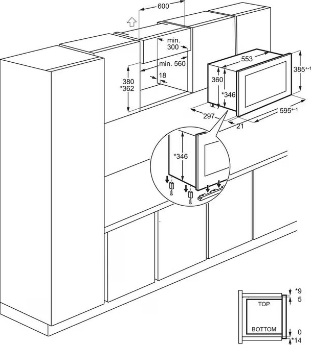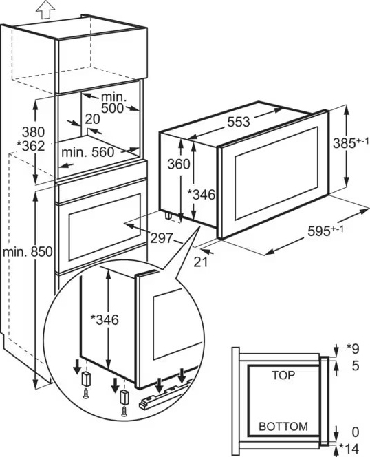 Высота микроволновой печи, то есть расстояние от основания до крышки прибора, определяется прежде всего типом встраивания. Отдельно стоящие модели — как соло, так и оснащенные грилем или конвекцией, — с камерой объемом от 15 до 30 литров, имеют высоту около 30 см. Такие микроволновки удобно размещаются на столе; при необходимости их можно убрать на полку или в шкаф. Встраиваемые в стандартную кухонную колонну или тумбу многофункциональные микроволновые печи имеют ту же высоту, что и другая встроенная техника: для компактных приборов она составляет 45 см, а для полноразмерных — порядка 60 см.