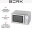 Bork W703 — отдельно стоящая микроволновая печь с камерой объемом 34 литра. Корпус изготовлен из нержавеющей стали. Максимальная мощность микроволн составляет 1200 Вт. Электронная панель управления с кнопками и большим цифровым дисплеем позволяет выбирать параметры работы и устанавливать таймер с автоматическим отключением в конце приготовления. Внутренняя поверхность камеры изготовлена из нержавеющей стали, в камере находится вращающееся стеклянное блюдо диаметром 31 см. 15 автоматических программ упрощают приготовление блюд, позволяют размораживать продукты по весу и по времени, разогревать готовые блюда. Сенсор IQ-разогрева и приготовления автоматически регулирует процесс приготовления, самостоятельно подбирая мощность. Для готовки в нестандартной посуде вращение блюда можно остановить.