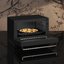 Внутренняя полость покрыта прочной эмалью, устойчивой к жировым отложениям, царапинам и перепадам температур, что значительно упрощает уход. Вращающийся стеклянный поддон диаметром 24,5 см способствует равномерному распределению энергии, исключая непрожаренные участки. Дверца с чёрным стеклом и лаконичной окантовкой придаёт устройству современный и элегантный облик, легко вписывающийся в интерьеры от минимализма до классики.