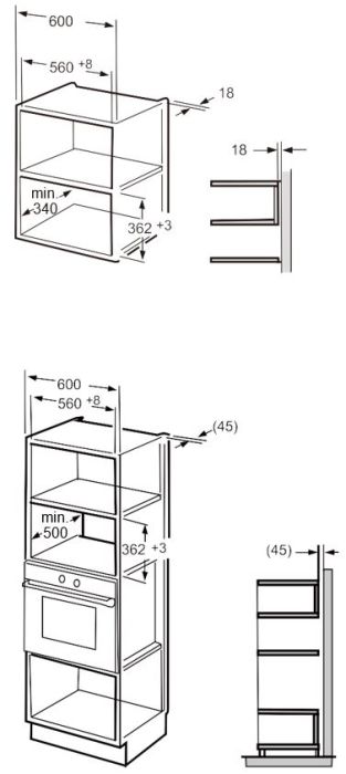 - Размеры ниши для встраивания (ВxШxГ): 38-38.2х56-56.8х55 cм