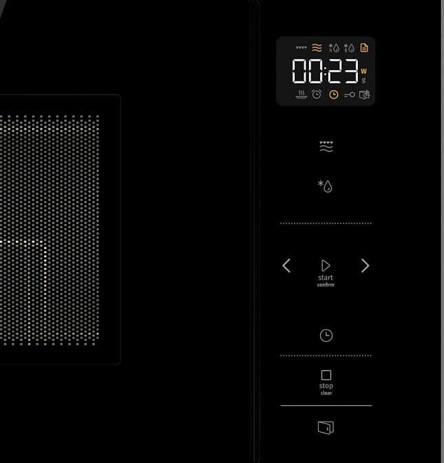 По способу получения изображения можно выделить модели с LED или LCD-дисплеями. Чаще всего СВЧ-печи оснащаются светодиодными дисплеями различных цветов — например, белого или красного. Больше возможностей предлагает TFT-дисплей с активной матрицей. Пользователь задает те или иные опции при помощи меню — например, выбирает режим размораживания по времени или по весу. Текстовыми сенсорными дисплеями оснащаются СВЧ-печи премиум-класса. Такие дисплеи из нескольких сегментов позволяют получить информацию об оставшемся времени, этапе выполнения программы при комбинированном режиме, отсрочке старта, текущем времени и дате.
