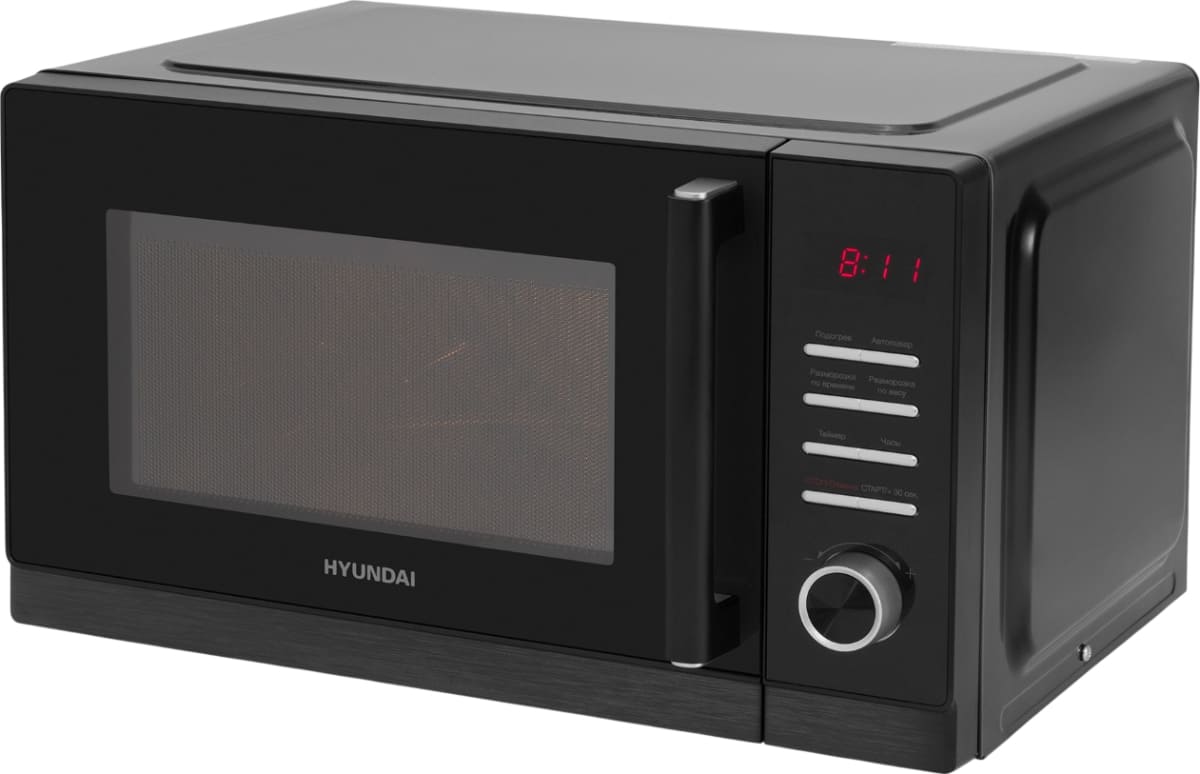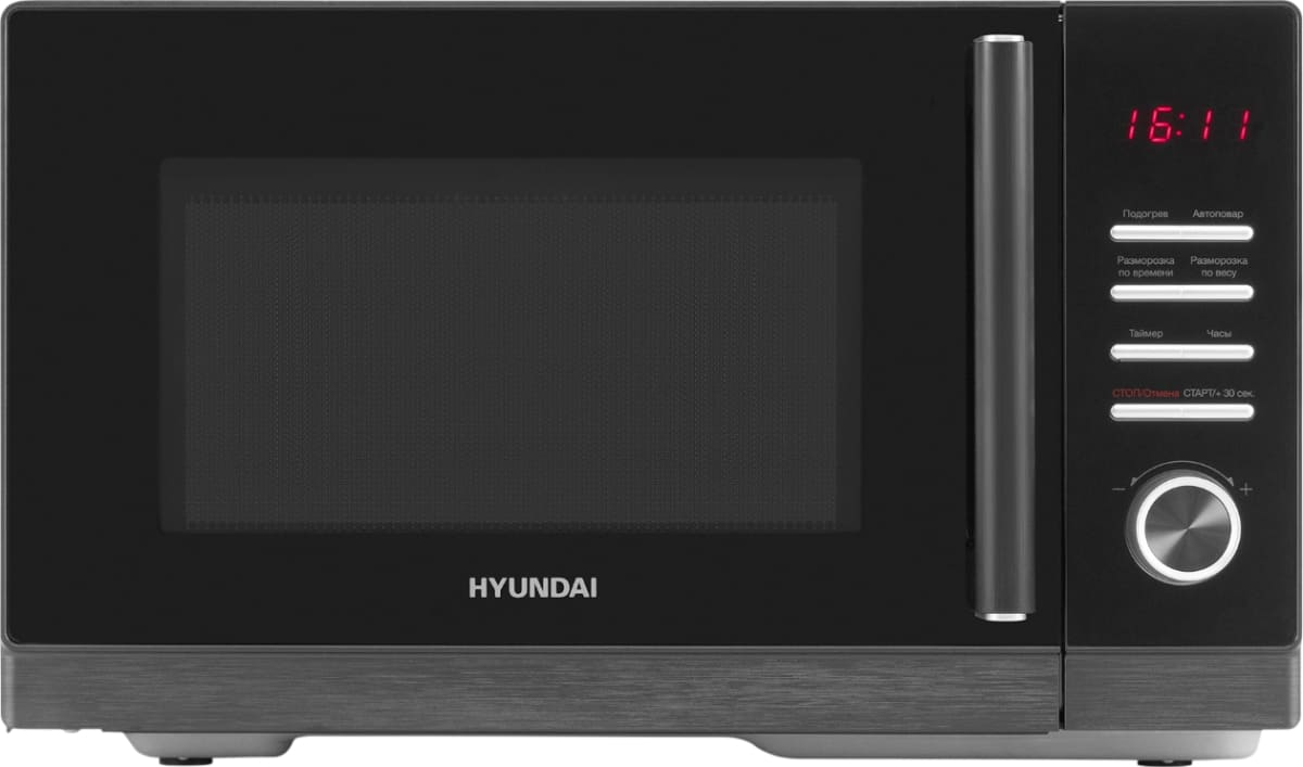 Количество режимов в данной модели Хендай: 3 шт. Для обработки продуктов и готовых блюд используются следующие виды нагрева: Микроволны, Автоматический режим разморозки, Автоматический режим приготовления. Если вы спешите, а еду нужно разогреть, используйте быстрый старт — благодаря ему 30 секунд прибор работает на полной мощности. Отдельная опция для размораживания продуктов и полуфабрикатов облегчает жизнь — не нужно самостоятельно настраивать параметры. Автоматические программы для приготовления добавлены производителем также для упрощения работы.