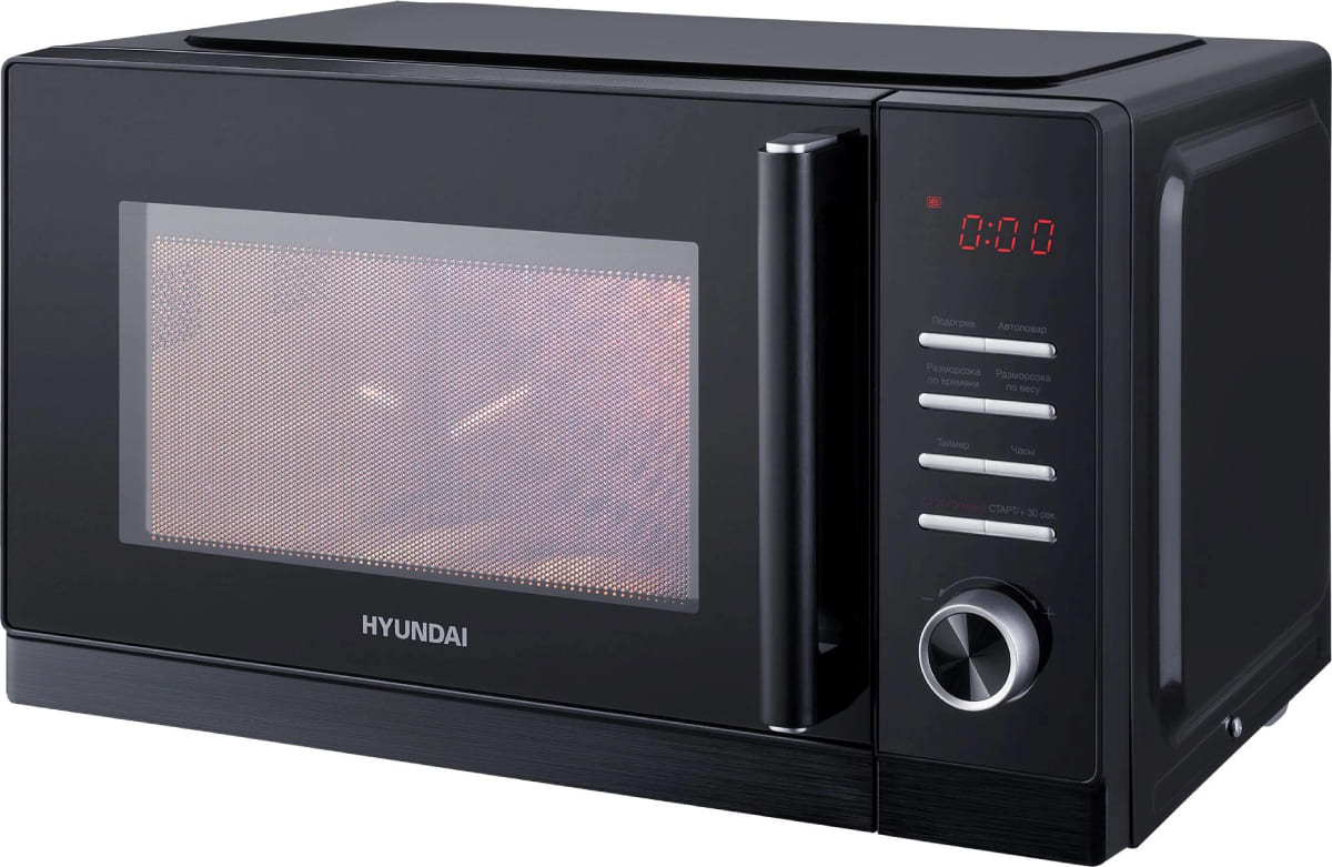 Количество режимов в данной модели Хендай: 3 шт. Для обработки продуктов и готовых блюд используются следующие виды нагрева: Микроволны, Автоматический режим разморозки, Автоматический режим приготовления. Если вы спешите, а еду нужно разогреть, используйте быстрый старт — благодаря ему 30 секунд прибор работает на полной мощности. Отдельная опция для размораживания продуктов и полуфабрикатов облегчает жизнь — не нужно самостоятельно настраивать параметры. Автоматические программы для приготовления добавлены производителем также для упрощения работы.
