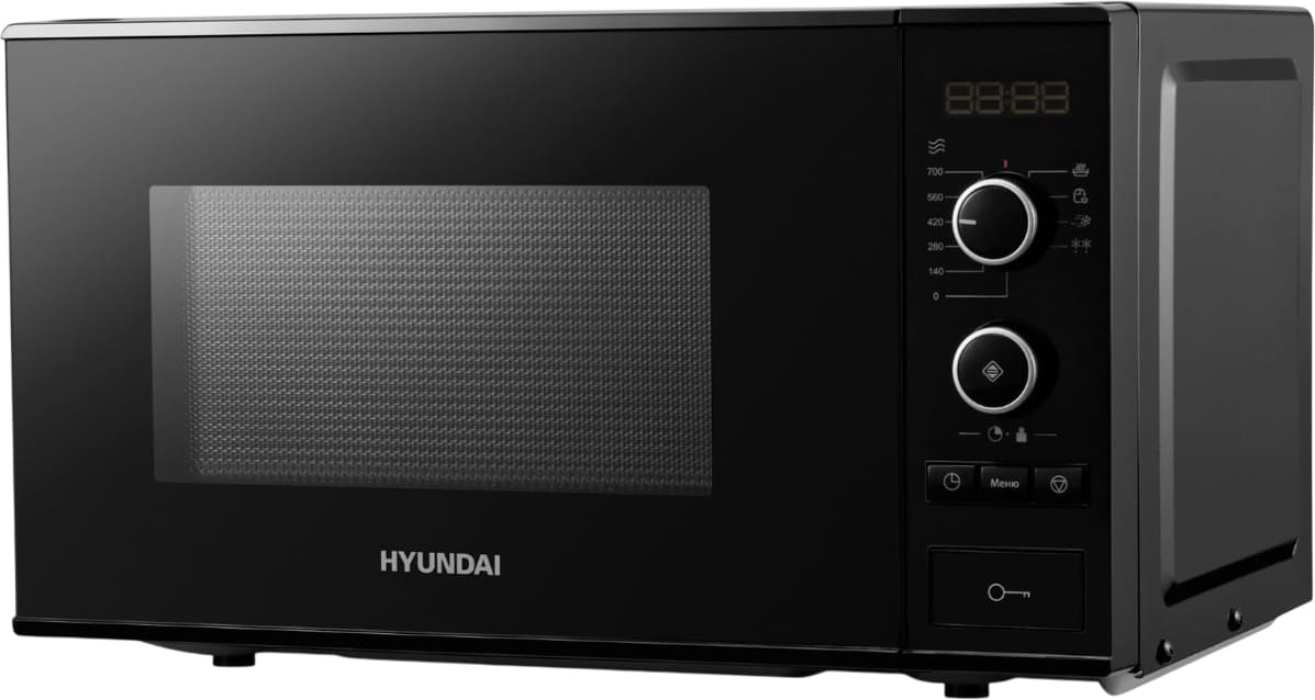 Отдельностоящая микроволновая печь Hyundai HYM-D3032 — компактное и полезное дополнение к уже имеющейся кухонной технике. Ее можно установить на шкаф, на свободную столешницу, но не рекомендуется ставить на другие приборы, например, холодильник. Цвет этой модели: черный.