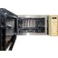 Более интересны цветовые решения для многофункциональных встраиваемых микроволновых печей. Эти приборы отличаются не только большей вместимостью, достаточно высокой ценой и широким набором возможностей, но и обширным выбором дизайнерских решений, а значит — и разнообразной по цвету фурнитурой. К ней можно отнести рукоятки поворотных переключателей, ручки-рейлинги у откидных дверей, элементы отделки. Кроме уже перечисленных оттенков, встроенные микроволновки могут оснащаться фурнитурой красного, золотого, серого цветов, а также оттенков меди и состаренного серебра.