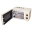 Внутреннее покрытие из нержавеющей стали обеспечивает прочность и простоту ухода, а также лучше переносит высокие температуры при использовании гриля. Вращающееся стеклянное блюдо диаметром 24.5 см равномерно распределяет микроволны, что снижает риск холодных зон в продуктах. Механическое управление с поворотными переключателями интуитивно понятно и надежно служит долгие годы. Дверца с кнопочным открыванием и левым упором упрощает доступ к камере и позволяет быстро ставить или снимать посуду.