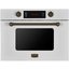 Более интересны цветовые решения для многофункциональных встраиваемых микроволновых печей. Эти приборы отличаются не только большей вместимостью, достаточно высокой ценой и широким набором возможностей, но и обширным выбором дизайнерских решений, а значит — и разнообразной по цвету фурнитурой. К ней можно отнести рукоятки поворотных переключателей, ручки-рейлинги у откидных дверей, элементы отделки. Кроме уже перечисленных оттенков, встроенные микроволновки могут оснащаться фурнитурой красного, золотого, серого цветов, а также оттенков меди и состаренного серебра.