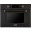 Более интересны цветовые решения для многофункциональных встраиваемых микроволновых печей. Эти приборы отличаются не только большей вместимостью, достаточно высокой ценой и широким набором возможностей, но и обширным выбором дизайнерских решений, а значит — и разнообразной по цвету фурнитурой. К ней можно отнести рукоятки поворотных переключателей, ручки-рейлинги у откидных дверей, элементы отделки. Кроме уже перечисленных оттенков, встроенные микроволновки могут оснащаться фурнитурой красного, золотого, серого цветов, а также оттенков меди и состаренного серебра.