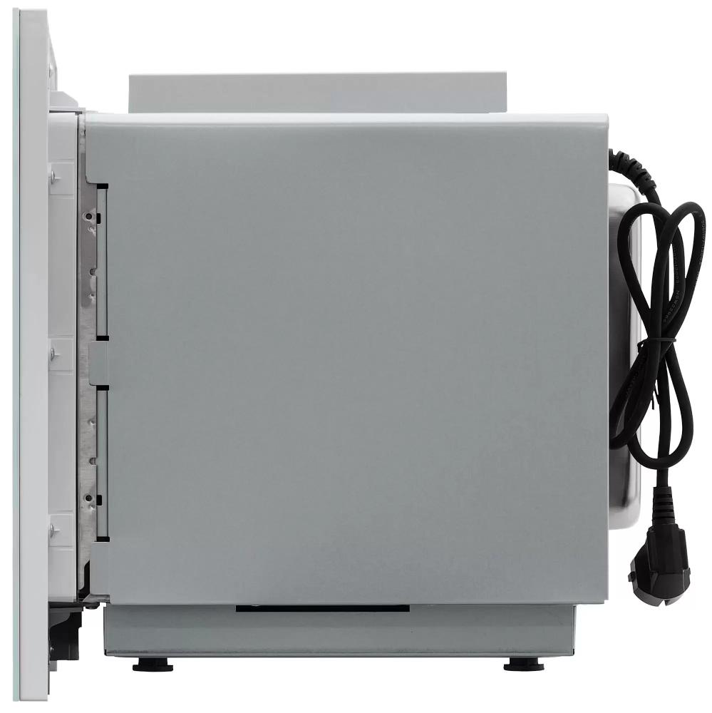Управление электронное, со встроенным дисплеем, цифровыми часами и таймером, что упрощает установку режима и времени. Сенсорные кнопки обеспечивают плавное и интуитивное управление, а функция быстрого старта запускает рабочий режим одним касанием. Наличие блокировки панели защищает детей от случайного включения и делает эксплуатацию безопаснее. Дверца навесная с кнопочным механизмом и левым упором открывается удобно и предсказуемо, а входящий в комплект решётка расширяет возможности приготовления на нескольких уровнях.