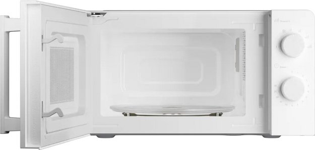 Материал внутренней поверхности — эмаль. Это самое распространенное покрытие, так как оно зарекомендовало себя высоким качеством, устойчивостью к механическим воздействиям и простотой ухода. Полезный объем для готовки — 20 л. Для установки и прогрева посуды используется классическое вращающееся блюдо. Стандартное механическое управление не вызовет трудностей ни у кого из вашей семьи. Для изменения настроек или выбора программ используются следующие переключатели: поворотные.