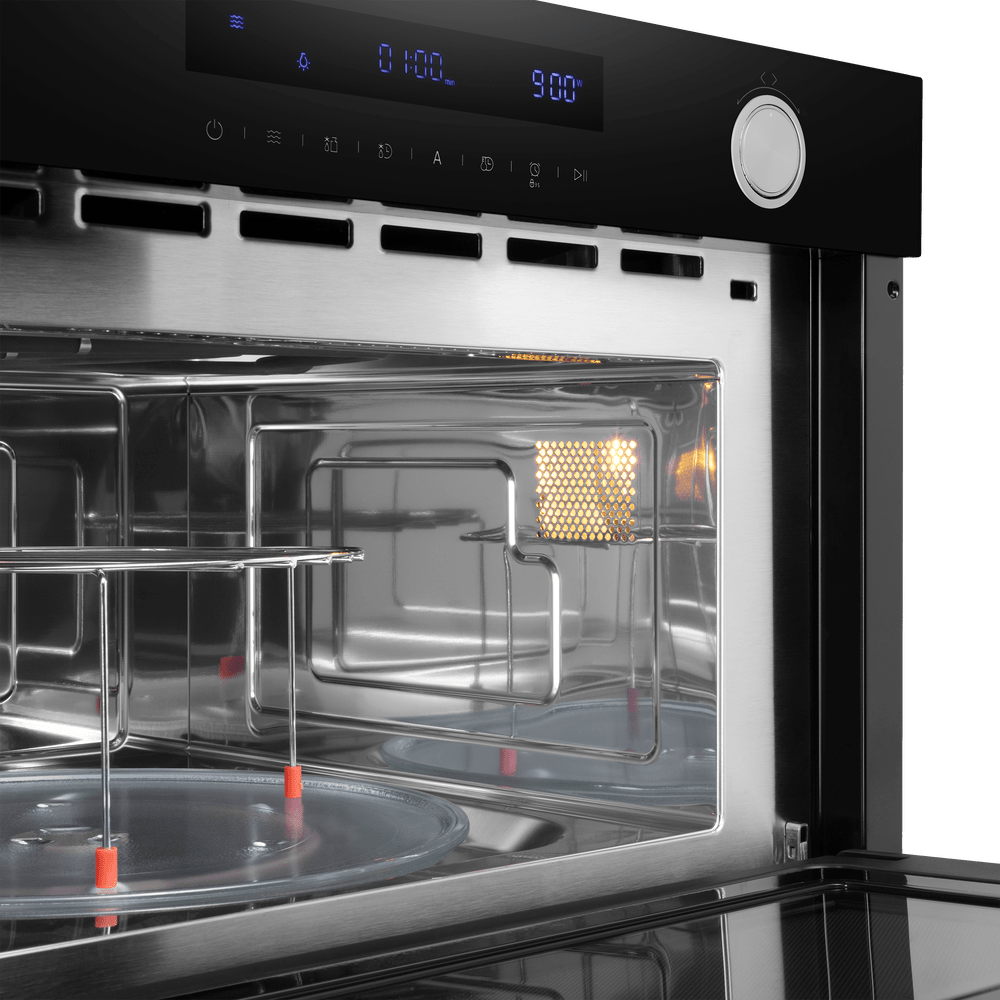 Нержавеющая сталь — быстро нагревается и хорошо переносит высокие температуры, поэтому ее используют в микроволновках с конвекцией.