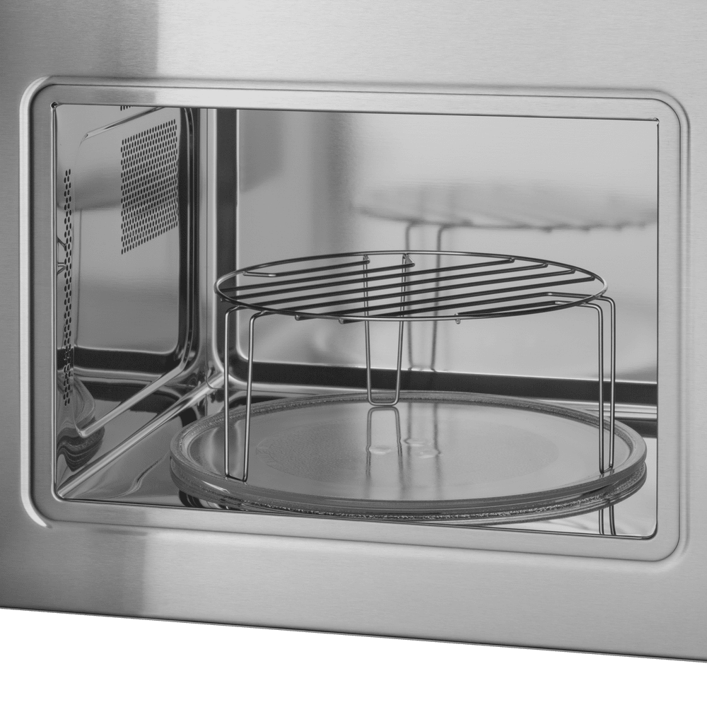 Нержавеющая сталь — быстро нагревается и хорошо переносит высокие температуры, поэтому ее используют в микроволновках с конвекцией.