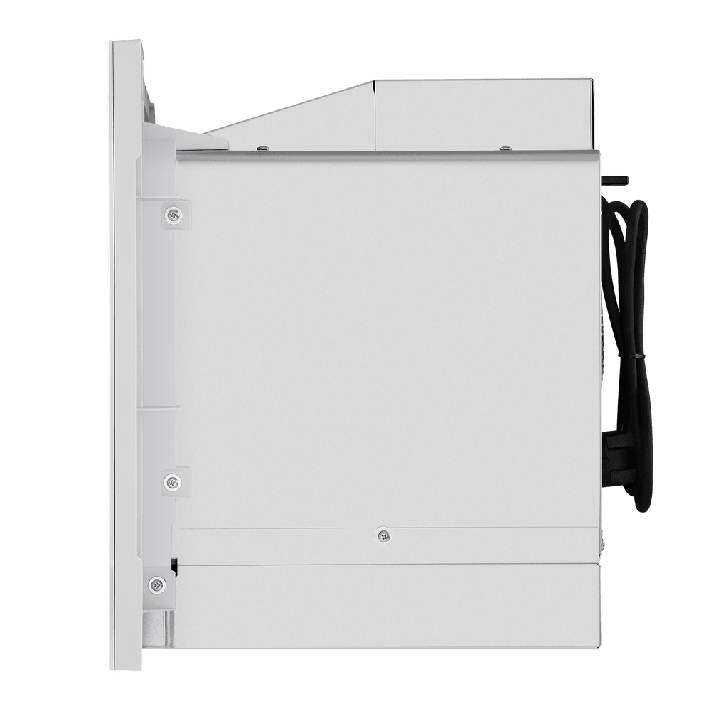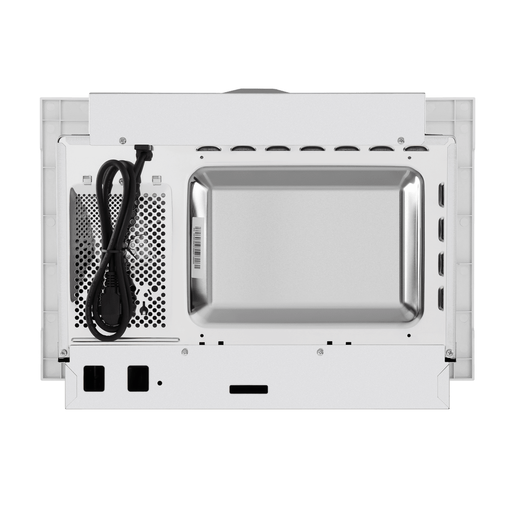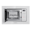 Это встраиваемая модель объёмом 20 л, рассчитанная на интеграцию в ниши размерами 38×56×34 см и обладающая габаритами 38.8×59.5×34.4 см. Эти характеристики делают её подходящей для малых кухонь или в дополнение к основной духовке. Аппарат сочетает несколько режимов нагрева: классические микроволны с пятью уровнями мощности (максимум 800 Вт), тэновый гриль мощностью 1 кВт и комбинированный режим «микроволны + гриль» — это позволяет не только разогревать и размораживать продукты, но и подрумянивать поверхность блюд. Наличие одной решётки расширяет возможности многослойной готовки. Встроенные автоматические программы (8 штук) упрощают повседневные задачи, а режим «разморозка» позволяет ускорить подготовку ингредиентов.