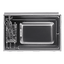 Объём рабочей камеры несколько превышает минимум и составляет 25 литров. Приготовление обычное, с поворотным стеклянным блюдом диаметром 31,5 см, есть и металлическая решётка для гриля. Устройство встраивается в стандартную мебельную нишу и само имеет габариты 38,6×59,5×41,6 см, что облегчает подгонку и установку на любой высоте. Магнетрон развивает мощность до 1 450 Вт, можно выбрать одну из пяти ступенями интенсивности, а тэновый гриль около 1 кВт дает направленное тепловое излучение сверху — это позволяет быстро разогревать, запекать с корочкой или сочетать режимы в соответствии с рецептом.