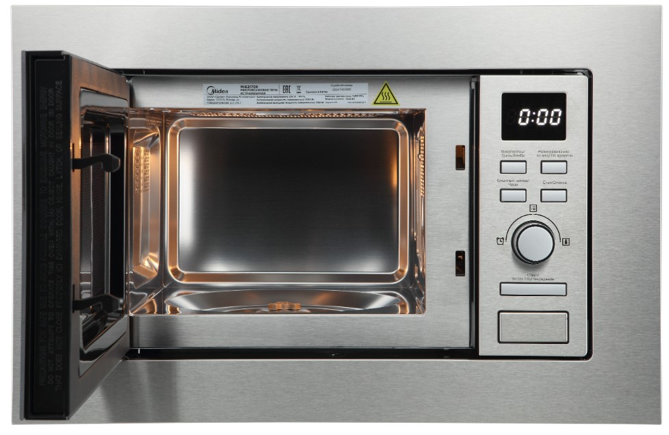 Встраиваемая микроволновая печь Midea MI62170X — прекрасное дополнение к уже имеющейся кухонной технике. Ее можно установить в колонну с духовым шкафом, пароваркой, кофемашиной. Цвет этой модели: нержавеющая сталь. Количество стекол в двери: 2 шт. Благодаря этому микроволновое излучение не выходит наружу, а также не перегреваются внешние панели.