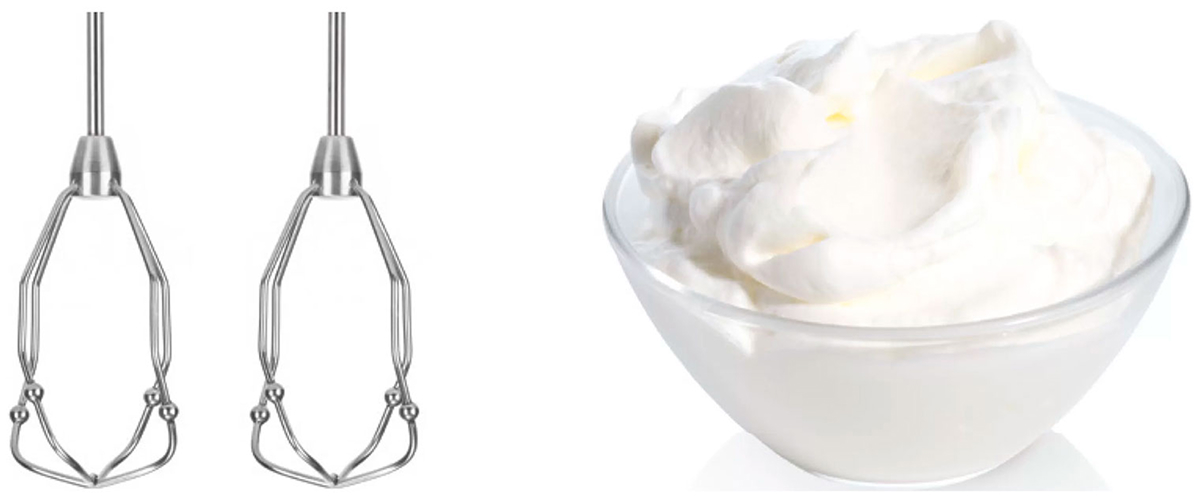 Ручной миксер — компактное устройство невысокой мощности, предназначенное для смешивания жидких или сыпучих ингредиентов, для приготовления пюре и жидкого теста, для взбивания сливок или яичных белков. В пластиковый корпус с ручкой вставляются насадки — венчики для взбивания или крюки для теста.