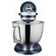 Обратите внимание на цвет миксера Китчен Эйд — чернильный синий — он может стать как гармоничным дополнением кухонной обстановки, так и ярким акцентом. В комплекте с самим прибором идут дополнительные элементы: венчик для взбивания, крюки для теста, насадка-лопатка для перемешивания, защитный обод, стальная чаша объемом 3 л, лопатка с гибким ребром.