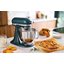 Миксер зеленого цвета в металлическом корпусе выглядит цельно и солидно: пропорции выдержаны, линии плавные, а стальная чаша добавляет выразительный акцент. При габаритах 35.5×22.5×35.5 см прибор не перегружает столешницу и гармонично сочетается с бытовыми приборами из металла. Насыщенный оттенок легко обыграть как контрастом, так и в тон кухонным аксессуарам.
