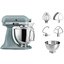 Обратите внимание на цвет миксера Китчен Эйд — синий дым — он может стать как гармоничным дополнением кухонной обстановки, так и ярким акцентом. В комплекте с самим прибором идут дополнительные элементы: венчик для взбивания, крюки для теста, насадка-лопатка для перемешивания, защитный обод, стальная чаша объемом 3 л, лопатка с гибким ребром.