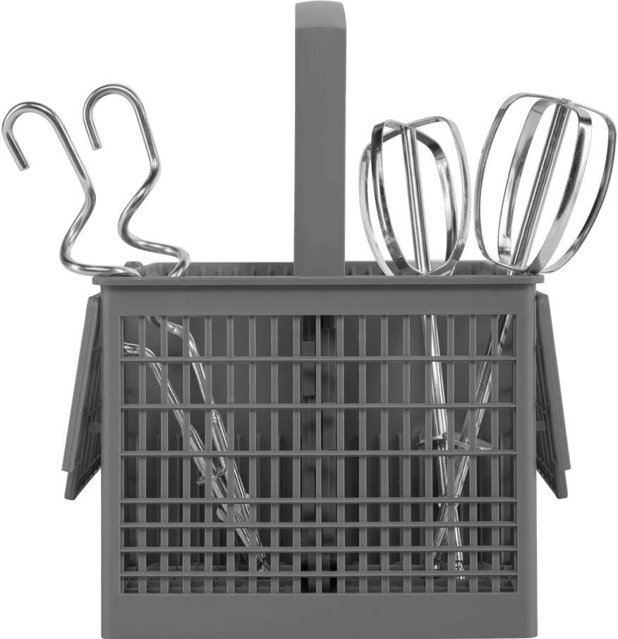 В комплект входят четыре насадки: венчик для взбивания и крюки для теста, выполненные из нержавеющей стали. Корпус изготовлен из пластика, а рабочие элементы — из коррозионно-стойкой стали, что сочетает лёгкость корпуса с долговечностью контактных деталей. Среди дополнительных опций есть подсветка и система защиты от перегрева, которая обеспечивает безопасную эксплуатацию при длительном замешивании или интенсивной работе.
