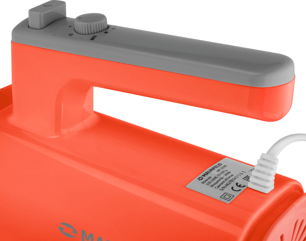 Выглядит компактно и энергично: корпус красного цвета с гладкой пластиковой оболочкой подчёркивает бытовой характер устройства. Его форма продумана для удобного хвата — длина и ширина корпуса укладываются в габариты 19.7×28×8 см, а вес 0.93 кг делает прибор лёгким в обращении. В упаковке он занимает немного места (20.5×14×13 см) и имеет брутто-вес 1.1 кг, что удобно при хранении и транспортировке.