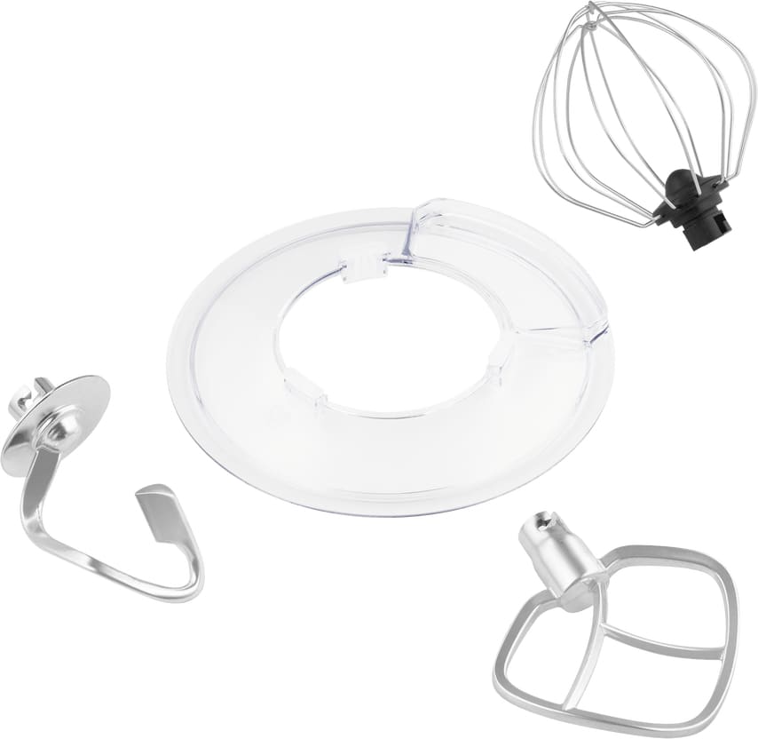 Обратите внимание на цвет миксера Маунфилд — нержавеющая сталь — он может стать как гармоничным дополнением кухонной обстановки, так и ярким акцентом. В комплекте с самим прибором идут дополнительные элементы: венчик для взбивания, защитный обод с воронкой для засыпания продуктов, крюки для теста, насадка-лопатка для перемешивания.