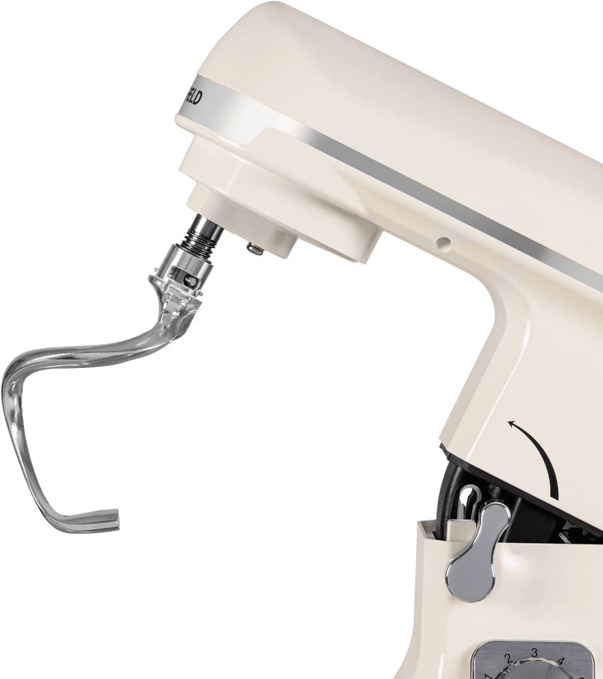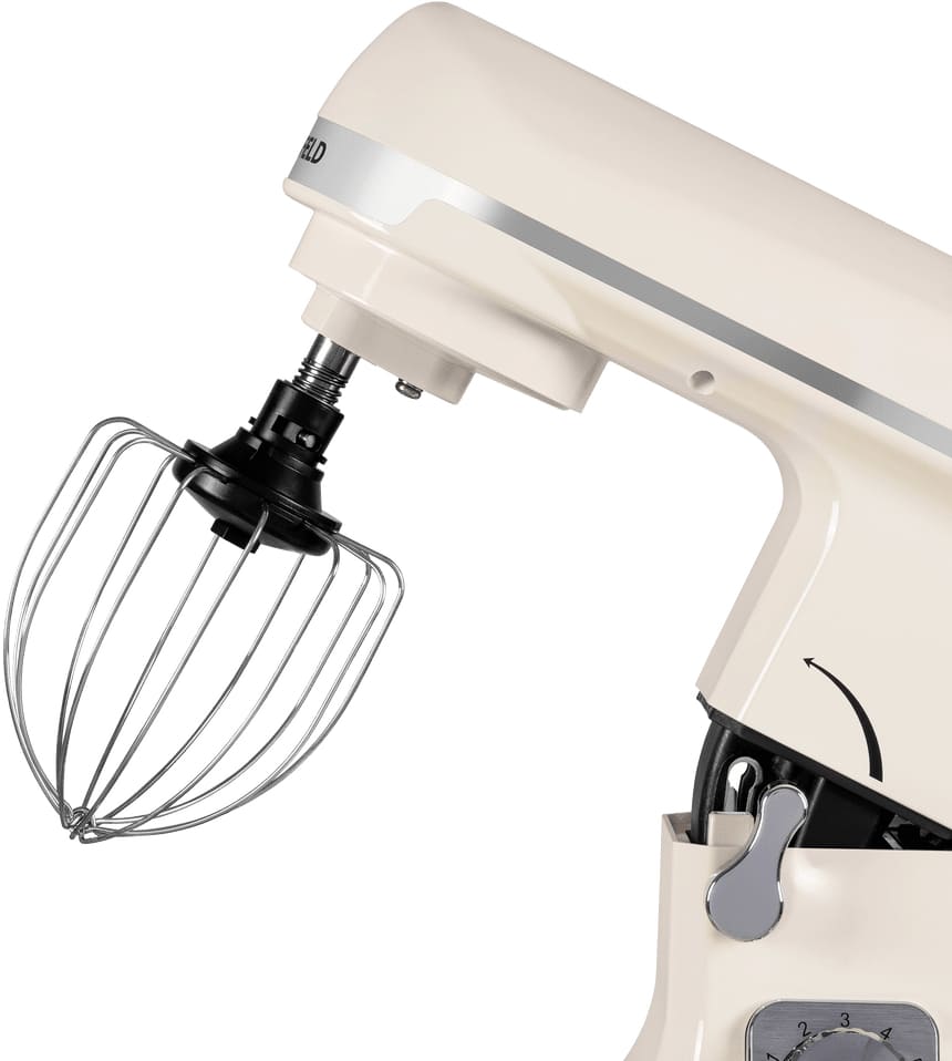 Модель оснащена вместительной чашей объёмом 5 литров, выполненной из нержавеющей стали — материала, известного своей прочностью, гигиеничностью и устойчивостью к агрессивным средам. Эта ёмкость идеально подходит для замешивания дрожжевого или песочного теста, приготовления кремов, соусов и других кулинарных смесей в больших количествах. Благодаря стальному исполнению, чаша не впитывает запахи, не окисляется и легко очищается даже после работы с липкими или жирными компонентами.