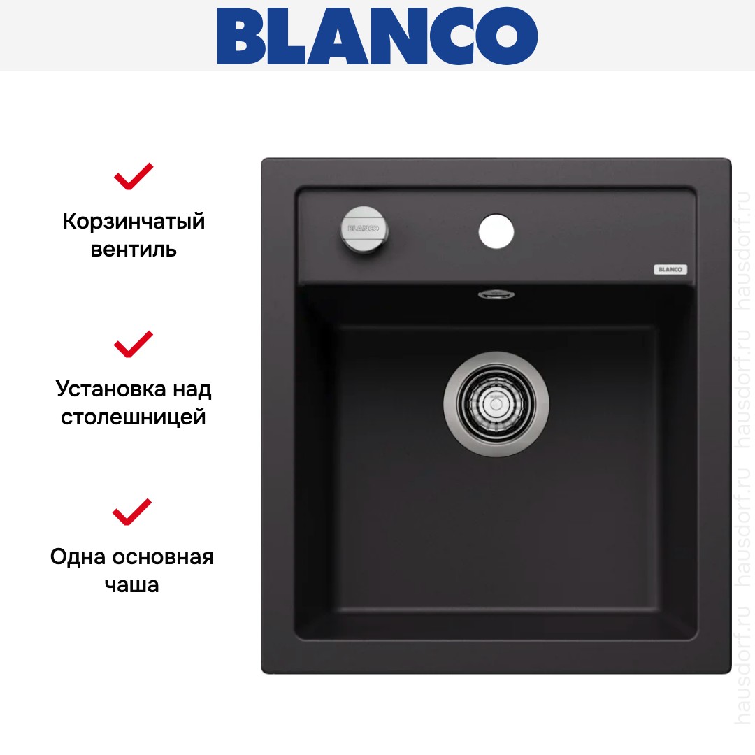 Мойка BLANCO DALAGO 45 Silgranit черный, клапан-автомат в Екатеринбурге
