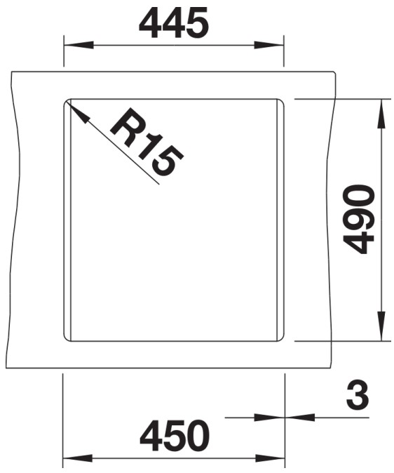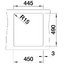 Установка производится над столешницей, что упрощает монтаж и экономит время ремонта. Для установки предусмотрены фиксирующие зажимы, которые надежно крепят мойку и исключают люфт в процессе эксплуатации. Рекомендуемая ширина базы под раковину — 45 см, а размеры монтажного отверстия 44.5×49 см и радиус скругления шаблона 1.5 см помогут точно подготовить столешницу. Конструкция необорачиваемая, поэтому при планировании важно учитывать ориентацию чаши по отношению к шкафам и смесителю.