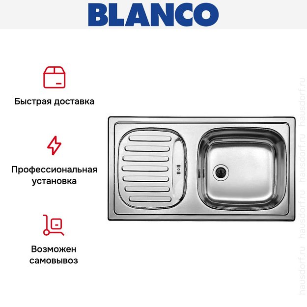 Мойки Blanco обладают целым рядом преимуществ: отличные эксплуатационные качества, долгий срок службы, превосходный внешний вид, производство на заводе в Германии, гарантия 5 лет.