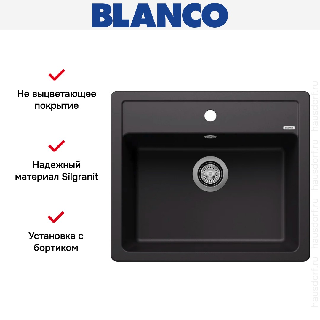 Обратите внимание на дизайнерские отличия мойки Бланко, которые помогут в создании идеальной кухни в вашем доме. Она выполнена в цвете черный. Основной материал — Silgranit, он гарантирует надежность и долгие годы службы без повреждений.
